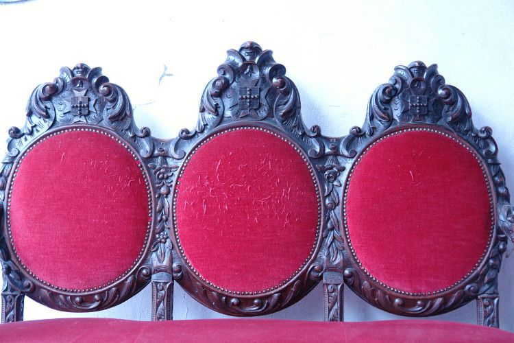 D 268 - canapé + two chairs Renaissance 1900 oak heavy sculpted