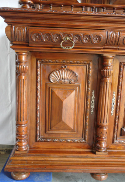 C 445 - Renaissance Cabinet 1900 Walnut Top 3 Glasses Doors + 3 Doors on Botton