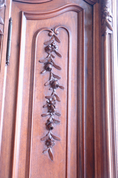 C 619 - Bedroom set Louis XV Walnut Wardrobe Three doors Bed