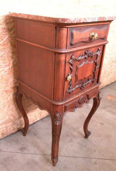 C 724 - Bedroom Set Walnut Wardrobe 2 doors Wardrobe one door Bed Bedside Commode Mirror