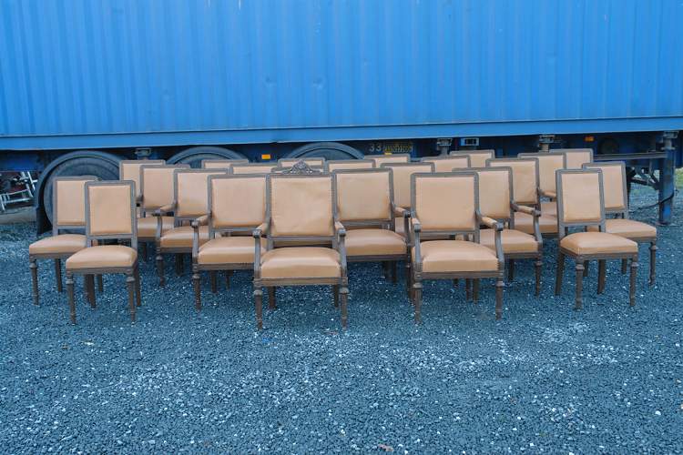 S 10 - Exeptional oak Louis XVI conference table with 20 armchairs and 4 chairs circa 1920